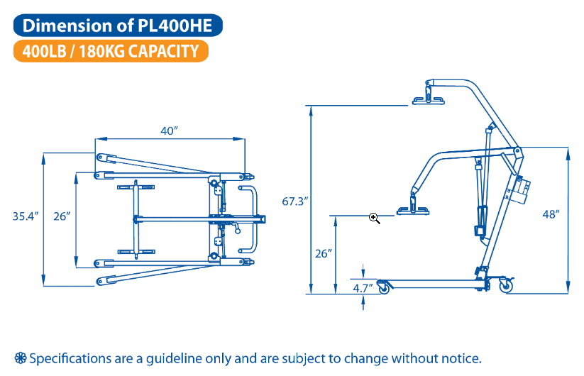 The PL400HE is Bestcare’s answer to home care needs. Featuring a 400 lb. maximum weight capacity and Bestcare battery-powered control system for powerlifting, the PL400HE is easily adaptable for a wide range of challenges while still maintaining a high standard of comfort for patients. The use of Bestcare’s battery-powered electronic system provides a low-cost solution for powerlifting while providing convenience for caregivers. Designed for home care use and effective at providing quality care.