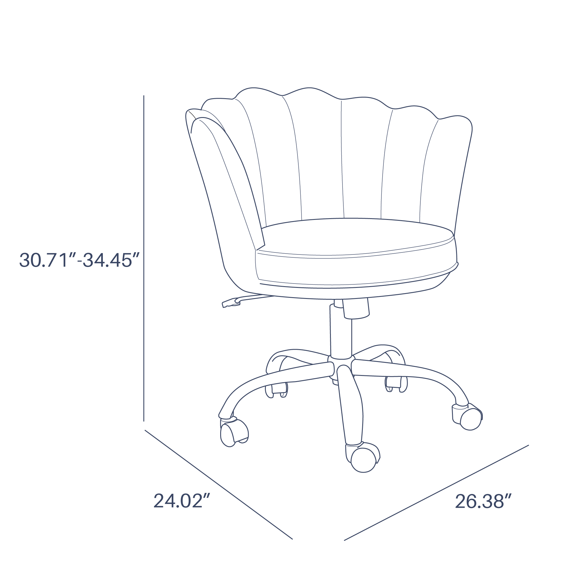 • Overall Dimension: 26.38"(L) x 24.02"(W) x 30.71"-34.45"(H)