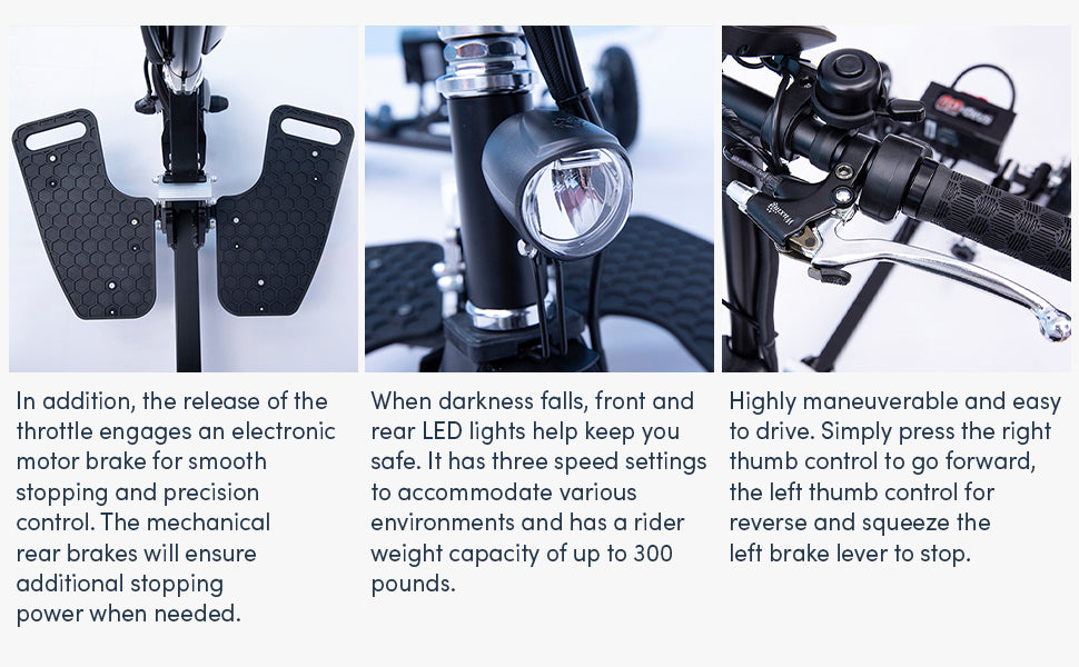 Simply detach the seat, fold the compact frame and store it. You can easily fit the SNAPnGO into any size trunk or even a backseat. No matter where you want to go, you’ll be ready to ride in seconds.