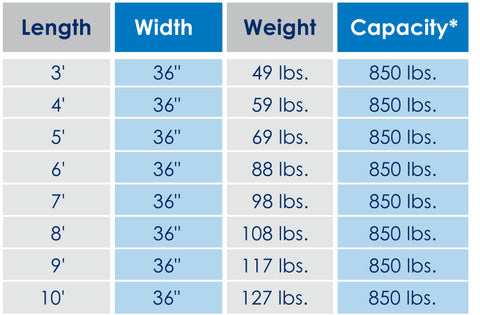 - Ramps available in lengths of 3', 4’, 5’, 6’, 7’, 8’, 9' & 10'.