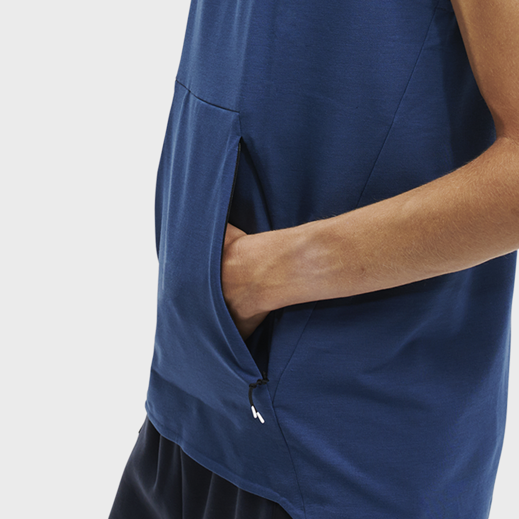 This tank is all about the details. Low armholes and soft-touch moisture wicking fabric keep you cool and dry when your training heats up. Concealed zips keep valuables secure in the spacious front pocket. Training never looked so good.
